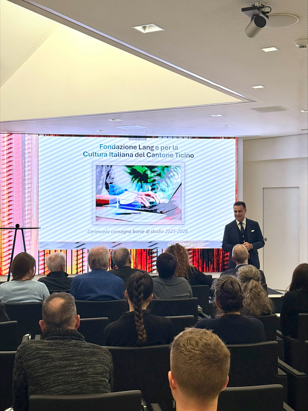 La consueta cerimonia di consegna delle borse di studio ha avuto luogo lunedì 9 febbraio 2026 presso la sede UBS di Lugano, in Piazzetta della Posta, alla presenza di circa 60 persone, per la maggior parte studenti accompagnati dai loro familiari.